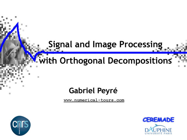 ). General setting: f : [0, 1]d ! Rs Videos: d = 3 , s = 1. Color image: d = 2 , s = 3. Multi-spectral: d = 2, s 3. Signals, Images and More Continuous signal: f 2 L 2 ([0 , 1]).