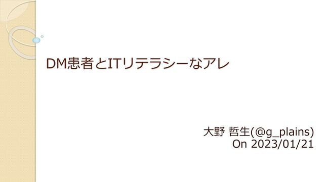 DM患者とITリテラシーなアレ 大野 哲生(@g_plains) On 2023/01/21