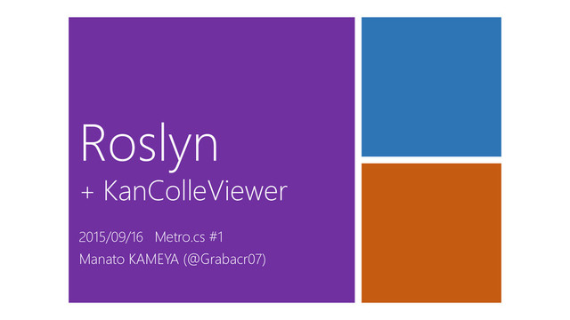Metro.cs #1 https://roommetro.doorkeeper.jp/events/30482 のセッション資料。 * KanColleViewer で Roslyn を使うに至った理由と、Roslyn の意義 👈 この資料 * KanColleViewer で使ったアナライザー実装の解説 👈 http://www.cat-ears.net/?p=40544