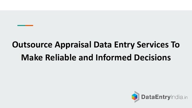 DataEntryIndia.in specializes in delivering appraisal forms data entry services to property/ real estate appraisers. Outsouring appraisal data entry services is a great solution for appraisers who want a centralized database with all the structured information stored in a fixed format.