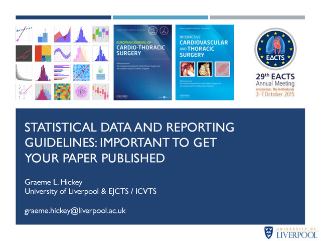 published in 1988! ! ! Currently 5 statistical consultants on the editorial board ! Guidelines developed based on experience of all consultants to make clear expectations to those submitting research, and highlight common errors _____________________________________________ [1] Guidelines for data reporting and nomenclature for The Annals of Thoracic Surgery. Ann Thorac Surg 1988;46:260–1. 0.0 5.0 10.0 15.0 20.0 25.0 30.0 2005 2006 2007 2008 2009 2010 2011 2012 2013 2014 2015 (Jan-June) Approximately 1 in 4 manuscripts submitted to EJCTS are referred for statistical review % of submitted manuscripts statistically reviewed