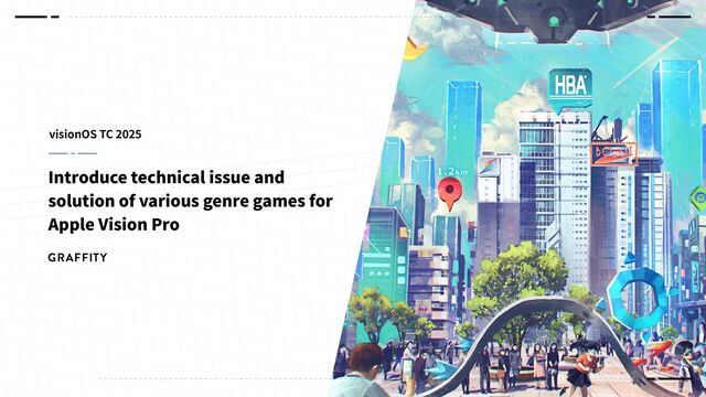 ffi ty has consistently delivered spatial entertainment. • Released two smartphone AR titles and two spatial games for Apple Vision Pro. • Most recently, we released the Apple Vision Pro spatial game “Shuriken Survivor.” • We operate Gra ffi ty AR Studio, which supports new B2C businesses utilizing AR, with numerous achievements collaborating with major clients. • Planned and developed the smartphone AR game “LOST ANIMAL PLANET” with NTT QONOQ. • We also run Gra ff i ty Spatial Lab, which supports planning and development of Apple Vision Pro applications. • Planned and developed the spatial video experience “Ploom Dive” for Ploom Shop, operated under the leadership of JT. • In addition, we have developed over 10 spatial applications to date. Spatial Game 「Gra ff i ty AR Studio」 「Gra ff i ty Spatial Lab」