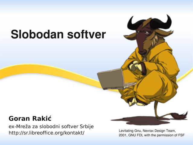 Goran Rakić ex-Mreža za slobodni softver Srbije http://sr.libreoffice.org/kontakt/ Slobodan softver