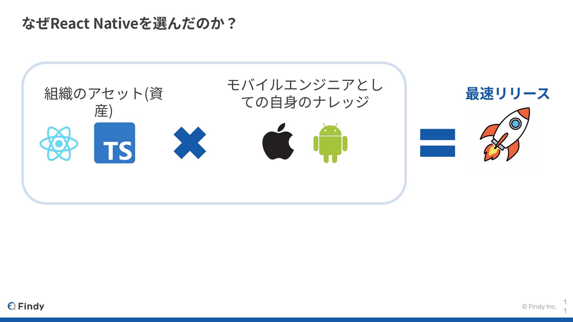 © Findy Inc. 1 1 なぜReact Nativeを選んだのか? 組織のアセット(資 産) モバイルエンジニアとし