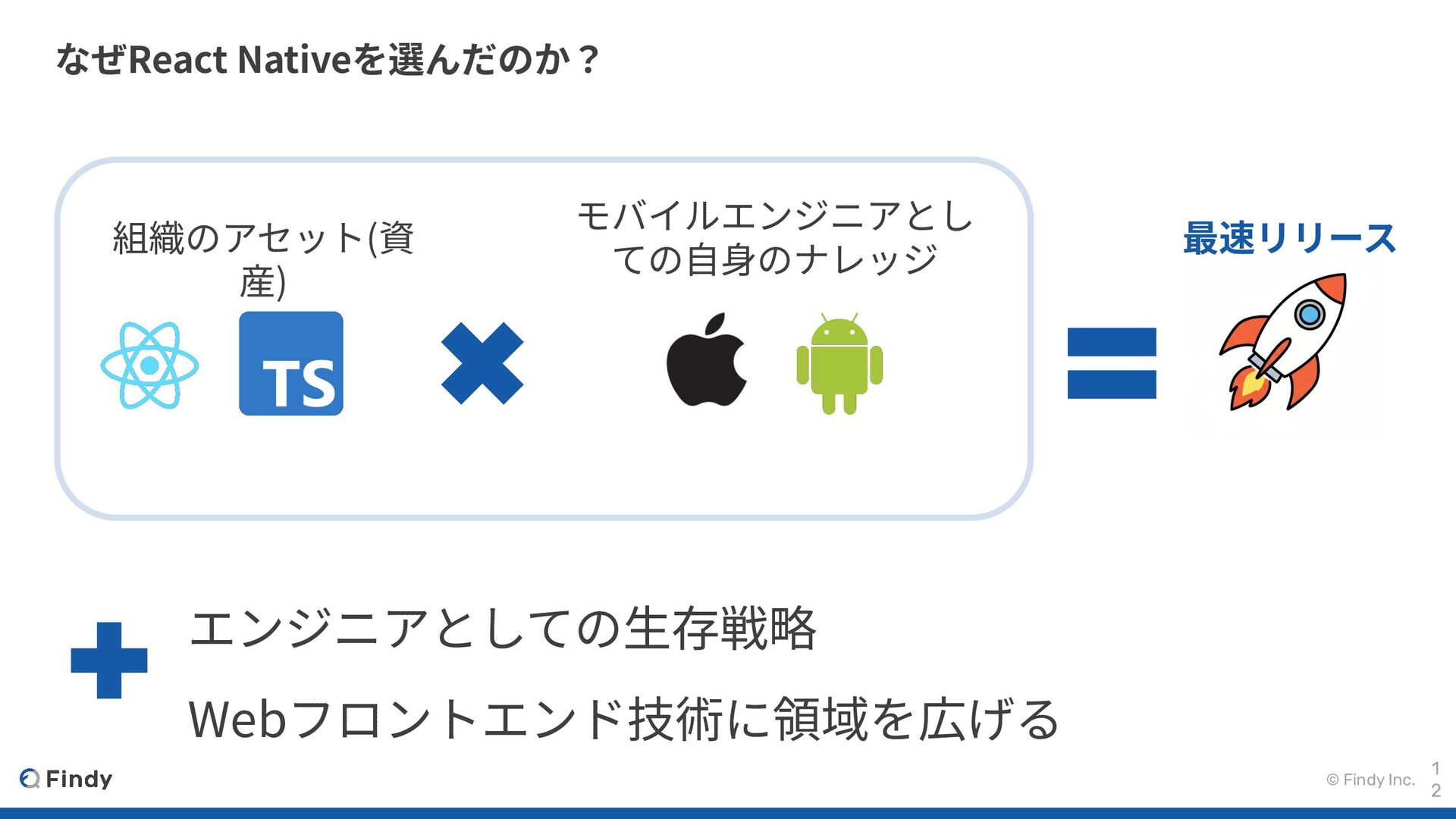 © Findy Inc. 1 2 なぜReact Nativeを選んだのか? 組織のアセット(資 産) モバイルエンジニアとし