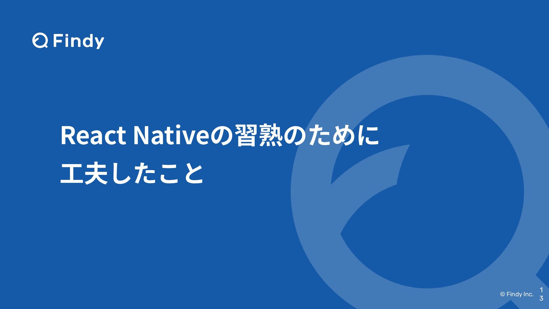 © Findy Inc. React Nativeの習熟のために ⼯夫したこと 1 3