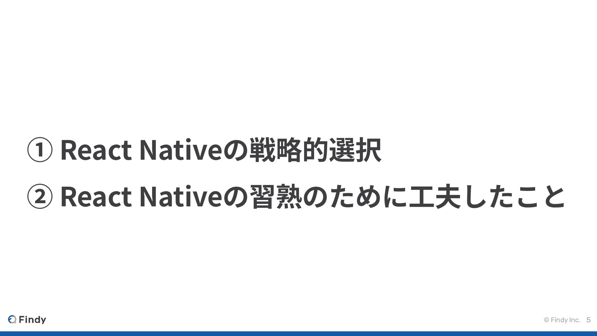 © Findy Inc. 5 ① React Nativeの戦略的選択 ② React Nativeの習熟のために⼯夫したこと