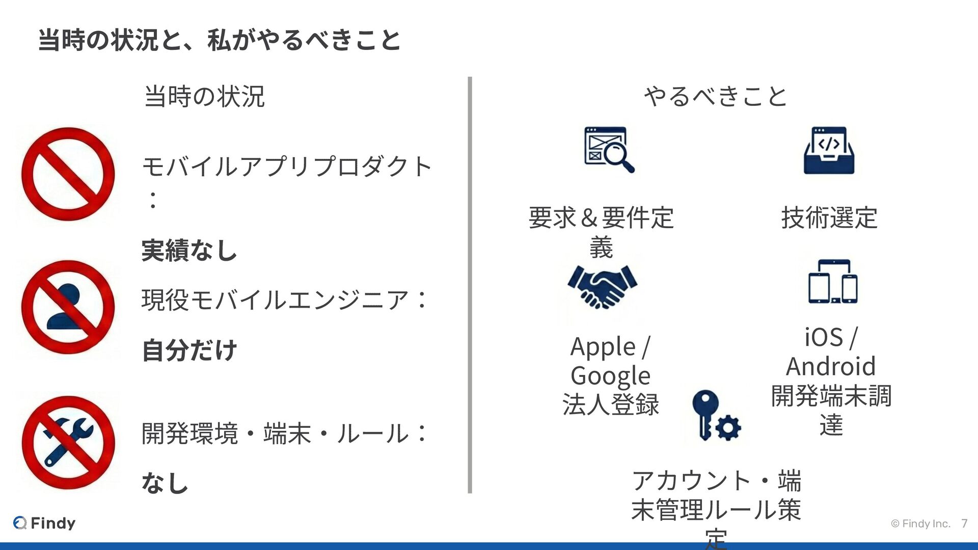 © Findy Inc. 7 当時の状況と、私がやるべきこと モバイルアプリプロダクト : 実績なし 現役モバイルエンジニア: ⾃分だけ