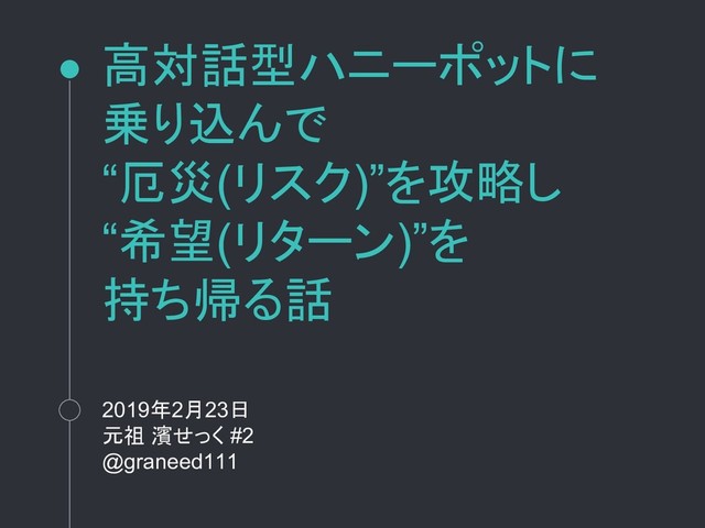 2019年2月23日の元祖 濱せっく #2でLTした資料です。
