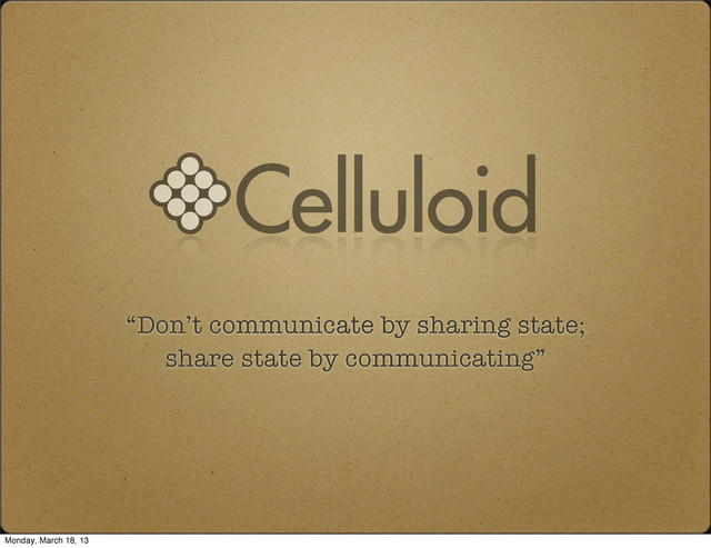 in your body, don’t mutate objects that have gone through the cell wall as messages. This is how celluloid guarantees thread safety. Monday, March 18, 13