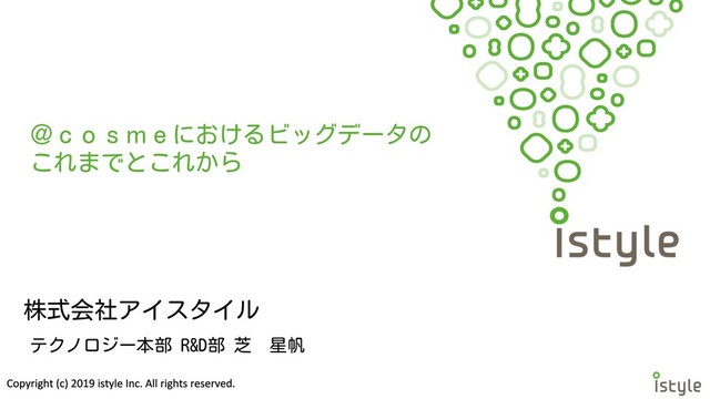 株式会社アイスタイル @cosmeにおけるビッグデータの これまでとこれから テクノロジー本部 R&D部 芝 星帆