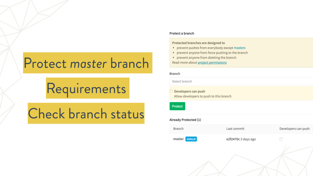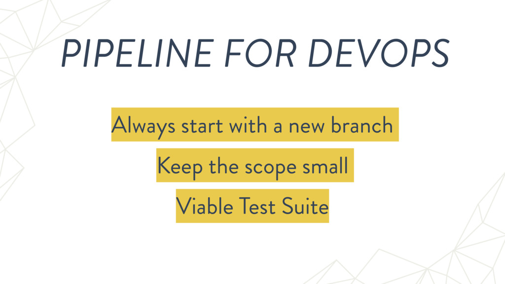 PIPELINE FOR DEVOPS Always start with a new branch Keep