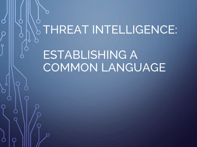 This talk highlights establishing a common vocabulary for an organization and provides a small walk through of how threat intelligence teams profile threats using a consistent scoring system. Users will learn some do's and don'ts for developing a threat intelligence program and receive a very high level summary of the different phases that make up the threat intelligence cycle. (Note: There are 2 additional slides in this deck that were not in the original presentation, 31 & 37 were added for users who cannot stream the video)