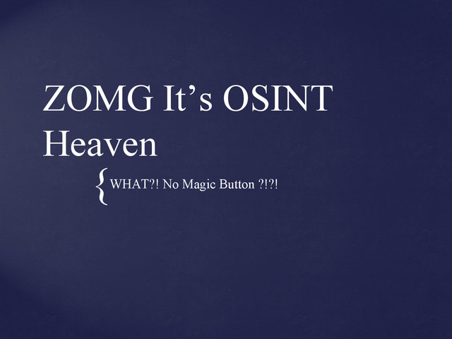 This talk expands significantly on the BSLV presentation (also posted to speakerdeck) and focuses on OSINT techniques and walks throgh taking bytes from data to threat intel. It discusses what OSINT is NOT, what OSINT is, and walk through a case study showing various brute force (manual) OSINT techniques. This talk also discusses business decisions, requirements, data gathering techniques and the progression from data to actionable intelligence. Both managers and analysts should attend the talk on 24 Oct 2015 at ToorCon SanDiego.