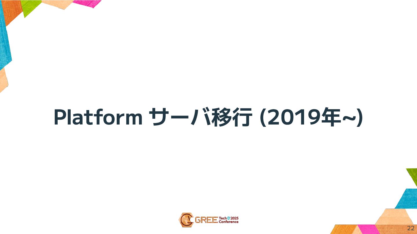 (9サービス)の移設 • 2019年頃よりPlatformサービス のサーバ移設を開始 • 2025年 クラウド移行完了