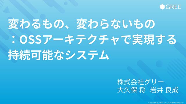 Copyright © GREE, Inc. All Rights Reserved. 変わるもの、変わらないもの :OSSアーキテクチャで実現する 持続可能なシステム
