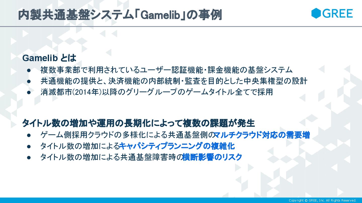 Copyright © GREE, Inc. All Rights Reserved. 内製共通基盤システム「Gamelib」の事例 Gamelib
