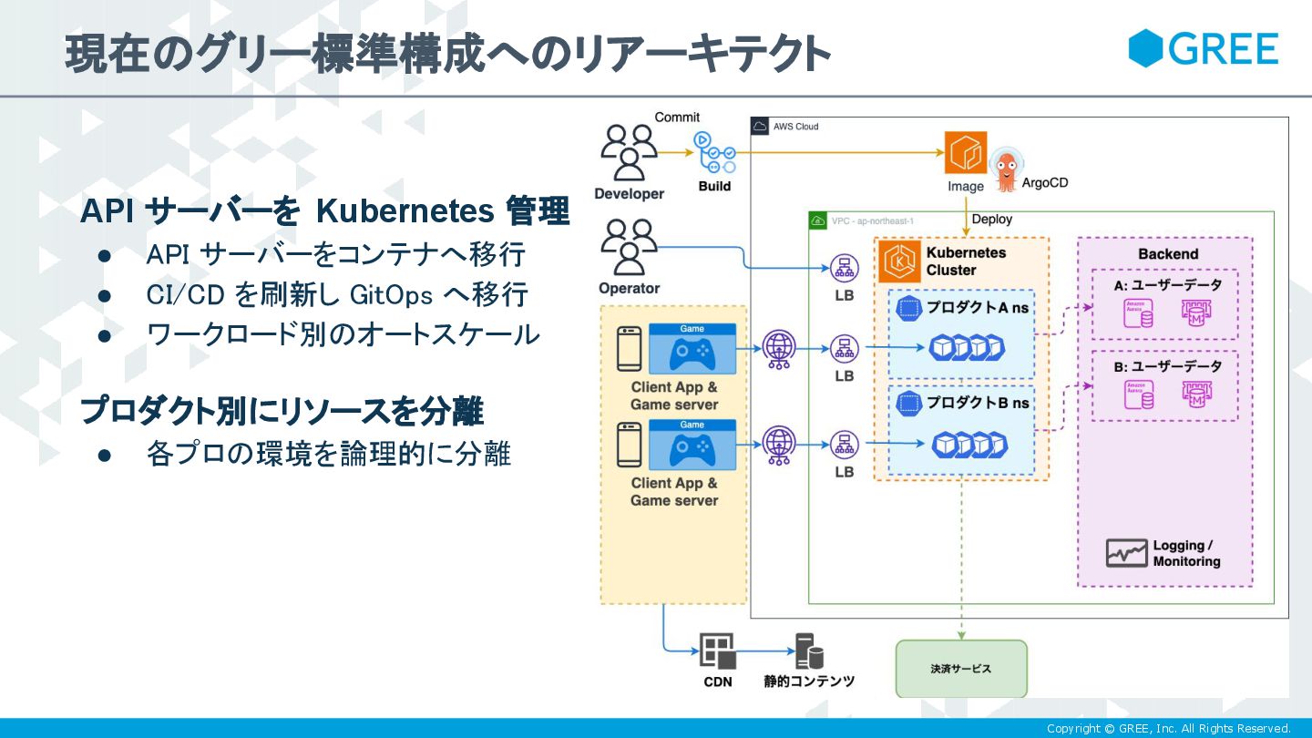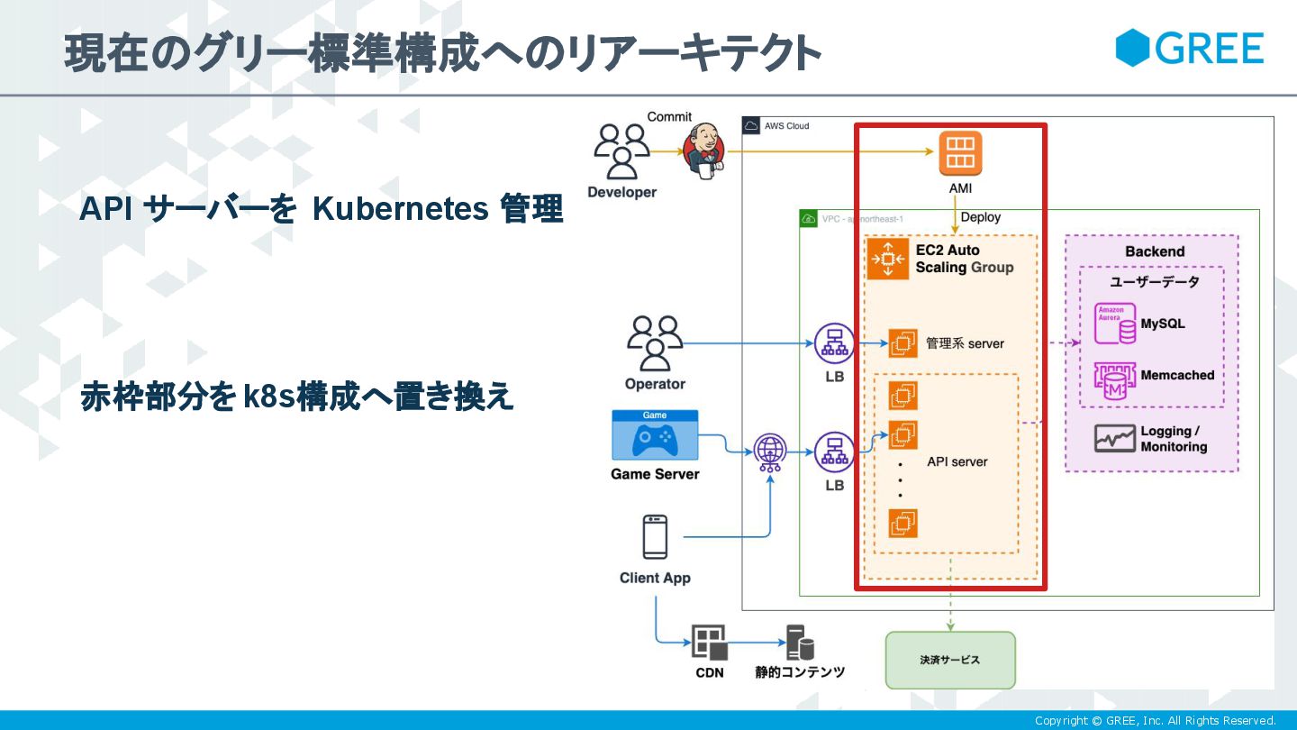 Copyright © GREE, Inc. All Rights Reserved. 現在のグリー標準構成へのリアーキテクト Kubernetes