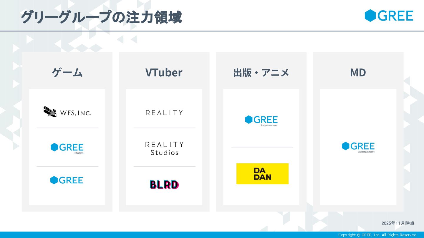 Copyright © GREE, Inc. All Rights Reserved. グリーグループの注力領域 2025年11月時点