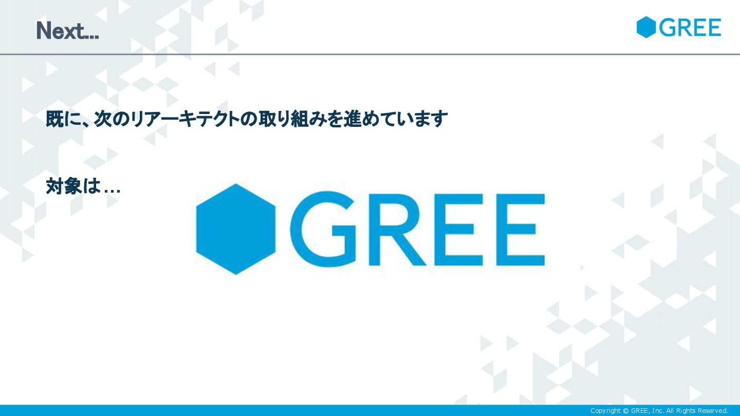 Copyright © GREE, Inc. All Rights Reserved. Next... 既に、次のリアーキテクトの取り組みを進めています