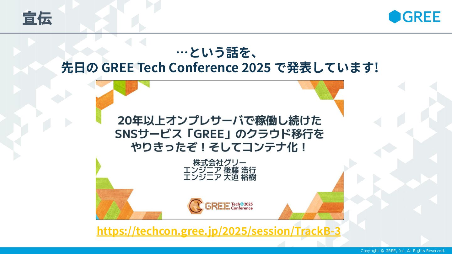 GREE Tech Conference 2025 で発表しています! https://techcon.gree.jp/2025/session/TrackB-3