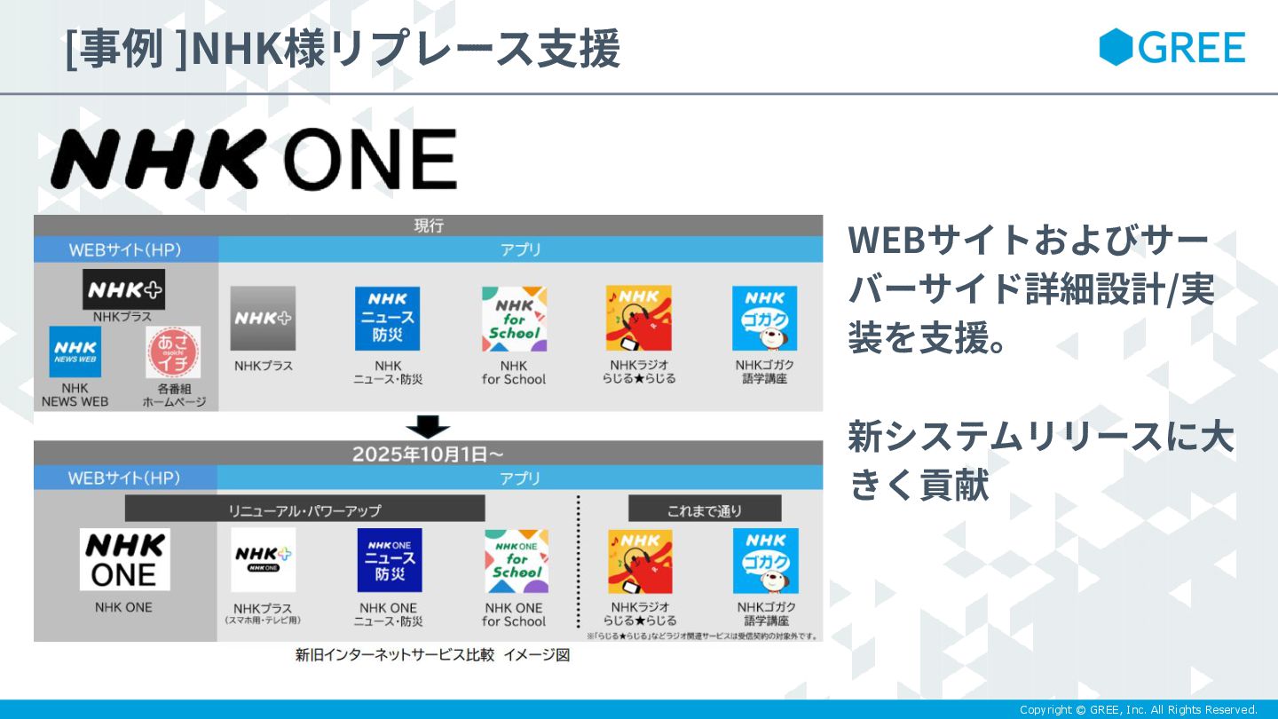 Copyright © GREE, Inc. All Rights Reserved. [事例 ]NHK様リプレース⽀援 WEBサイトおよびサー