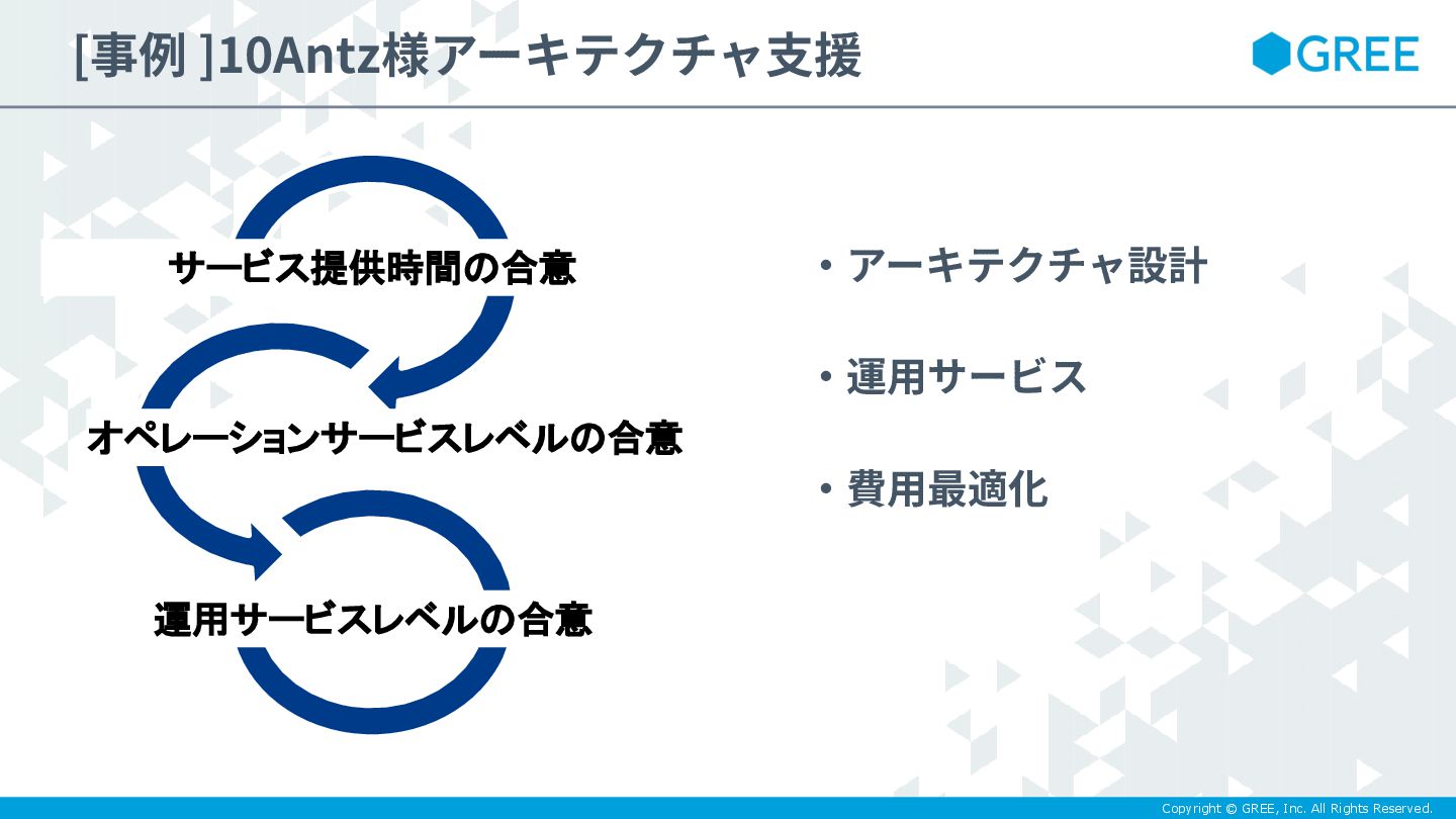 Copyright © GREE, Inc. All Rights Reserved. [事例 ]10Antz様アーキテクチャ⽀援 ‧アーキテクチャ設計