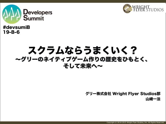Wright Flyer Studios, Inc. All Rights Reserved. εΫϥϜͳΒ͏·͍͘͘ʁ ʙάϦʔͷωΠςΟϒήʔϜ࡞Γͷྺ࢙Λͻͱ͘ɺ ͦͯ͠ະདྷʙ άϦʔגࣜձࣾ 8SJHIU'MZFS4UVEJPT෦ ࢁ࡚Ұ๏ EFWTVNJ# #