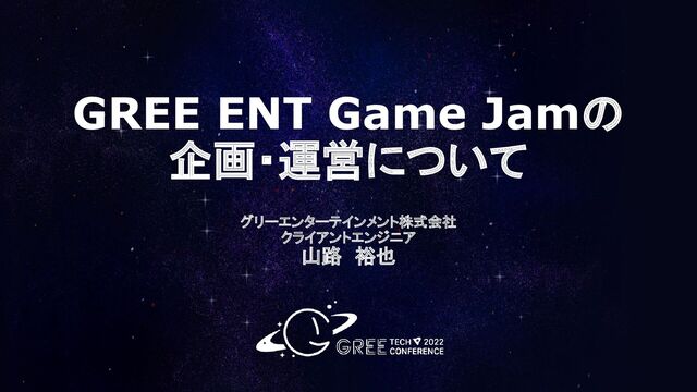 グリーエンターテインメント株式会社 クライアントエンジニア 山路 裕也 GREE ENT Game Jamの 企画・運営について