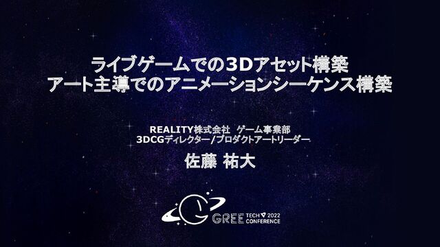 REALITY株式会社 ゲーム事業部 3DCGディレクター/プロダクトアートリーダー ライブゲームでの3Dアセット構築 アート主導でのアニメーションシーケンス構築 佐藤 祐大