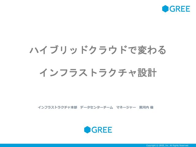 Inc. All Rights Reserved. ハイブリッドクラウドで変わる インフラストラクチャ設計 インフラストラクチャ本部 データセンターチーム マネージャー ⿊河内 倫