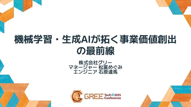 機械学習・生成AIが拓く事業価値創出 の最前線 株式会社グリー マネージャー 松富めぐみ エンジニア 石原達馬