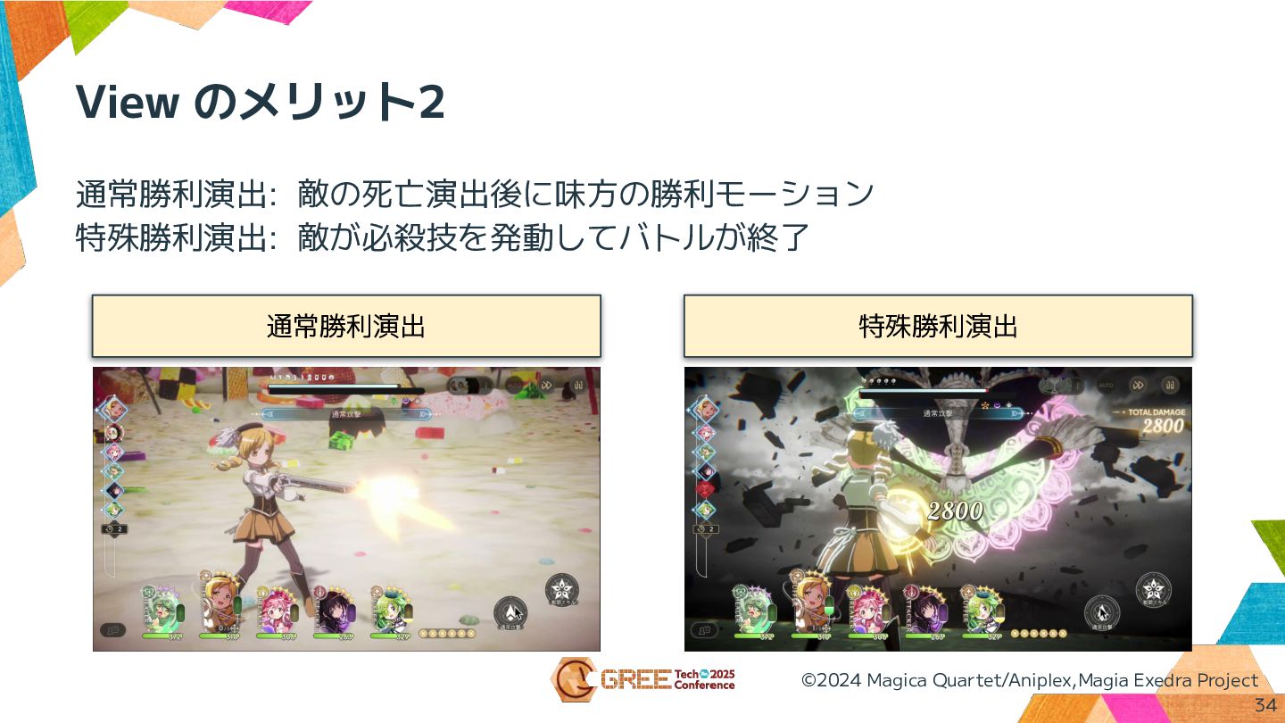 View のメリット2 特定のバトルのみ、特殊な専用 Sequence に置き換えることが可能 33 スキル発動演出 Sequence 初期化 Sequence