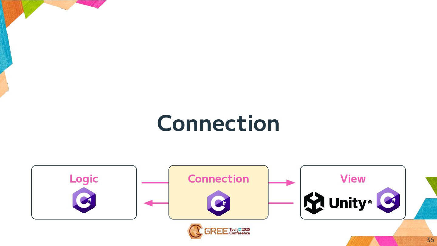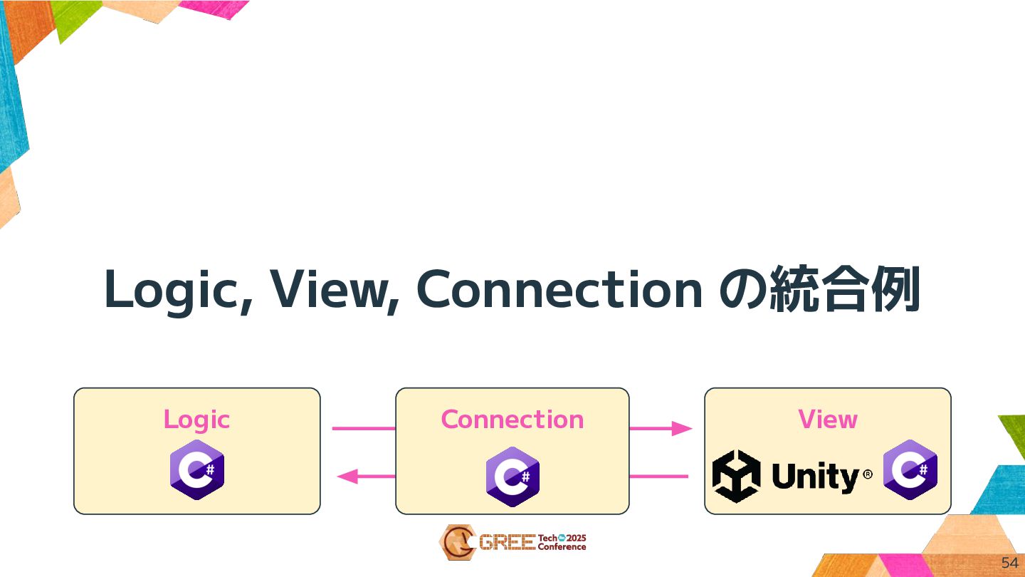 課題、今後の展望 直面した、している問題 • 実装者によって Logic に Unity のコードが誤って混入する可能性がある • Logic