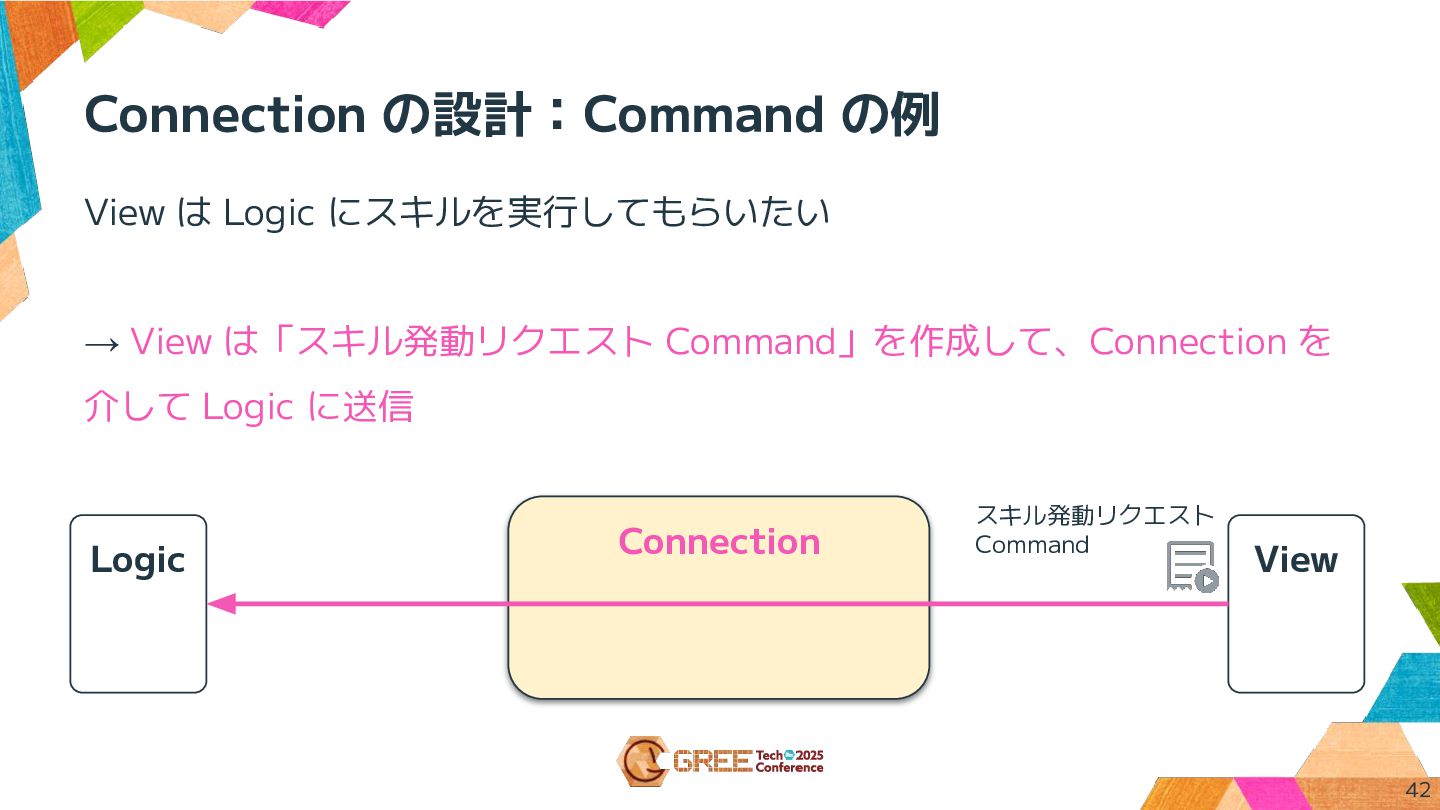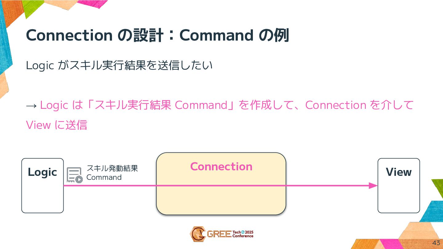 Logic に送信 Connection の設計:Command の例 42 Logic View Connection スキル発動リクエスト Command
