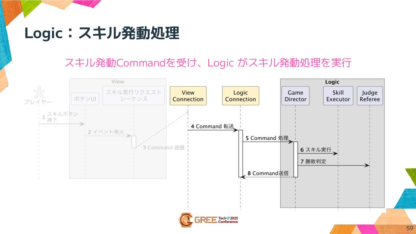 Logic:スキル発動処理 スキル発動Commandを受け、Logic がスキル発動処理を実行 59 3 Command 送信