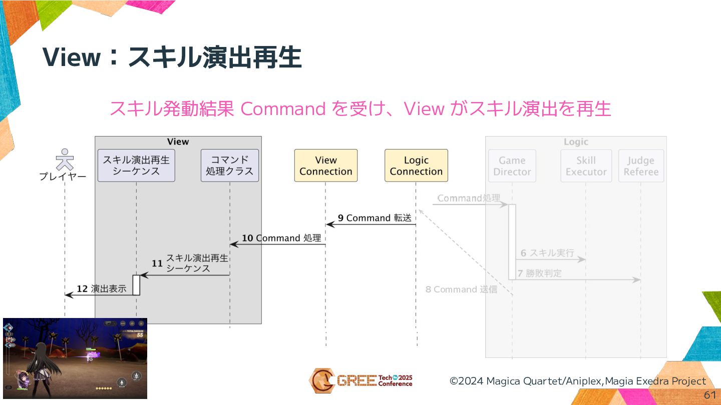 View:スキル演出再生 スキル発動結果 Command を受け、View がスキル演出を再生 61 8 Command 送信 ©2024