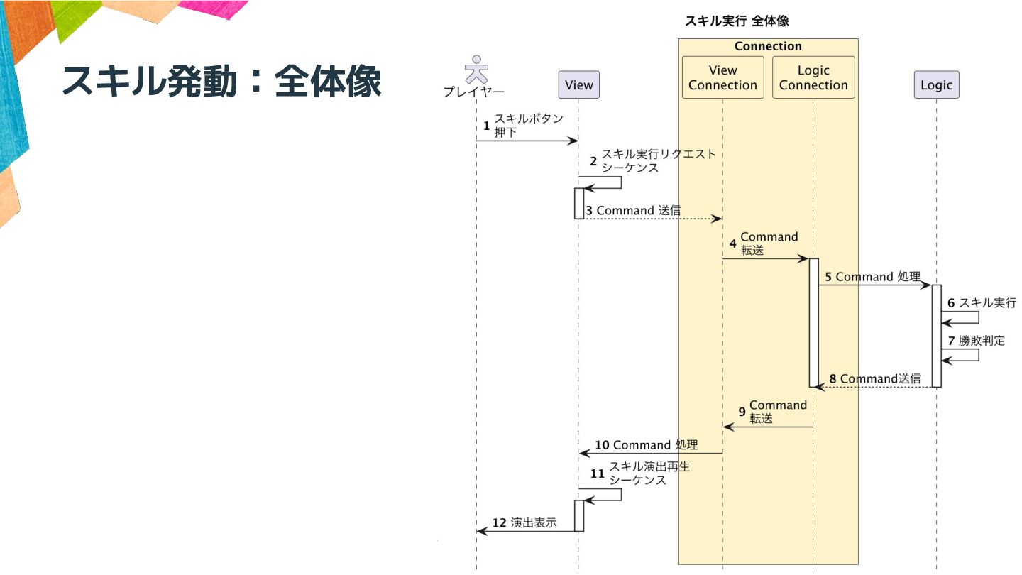 View は Logic にスキルを実行してもらいたい → View は「スキル発動リクエスト Command」を作成して、Connection を 介して