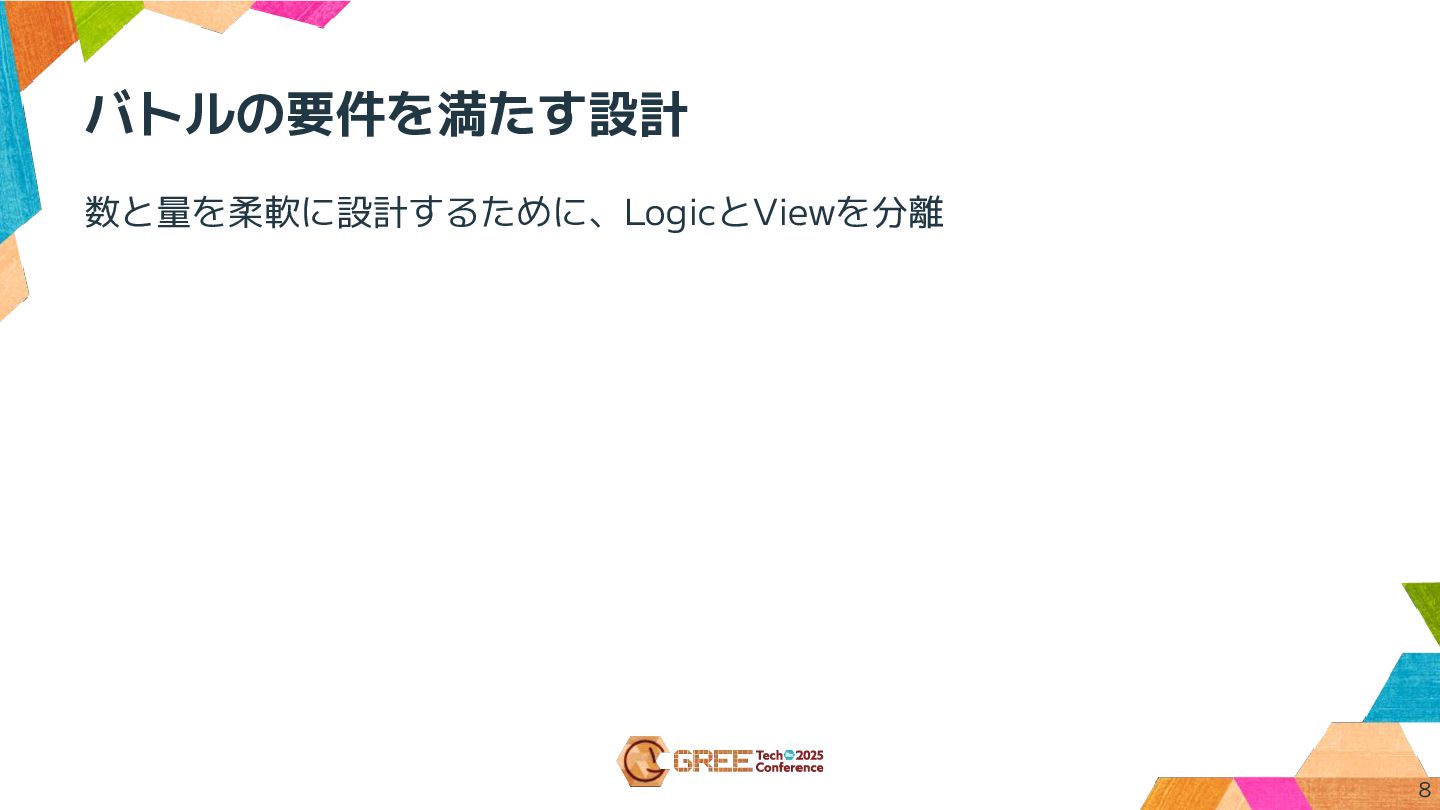 バトルの要件を満たす設計 数と量を柔軟に設計するために、LogicとViewを分離 8