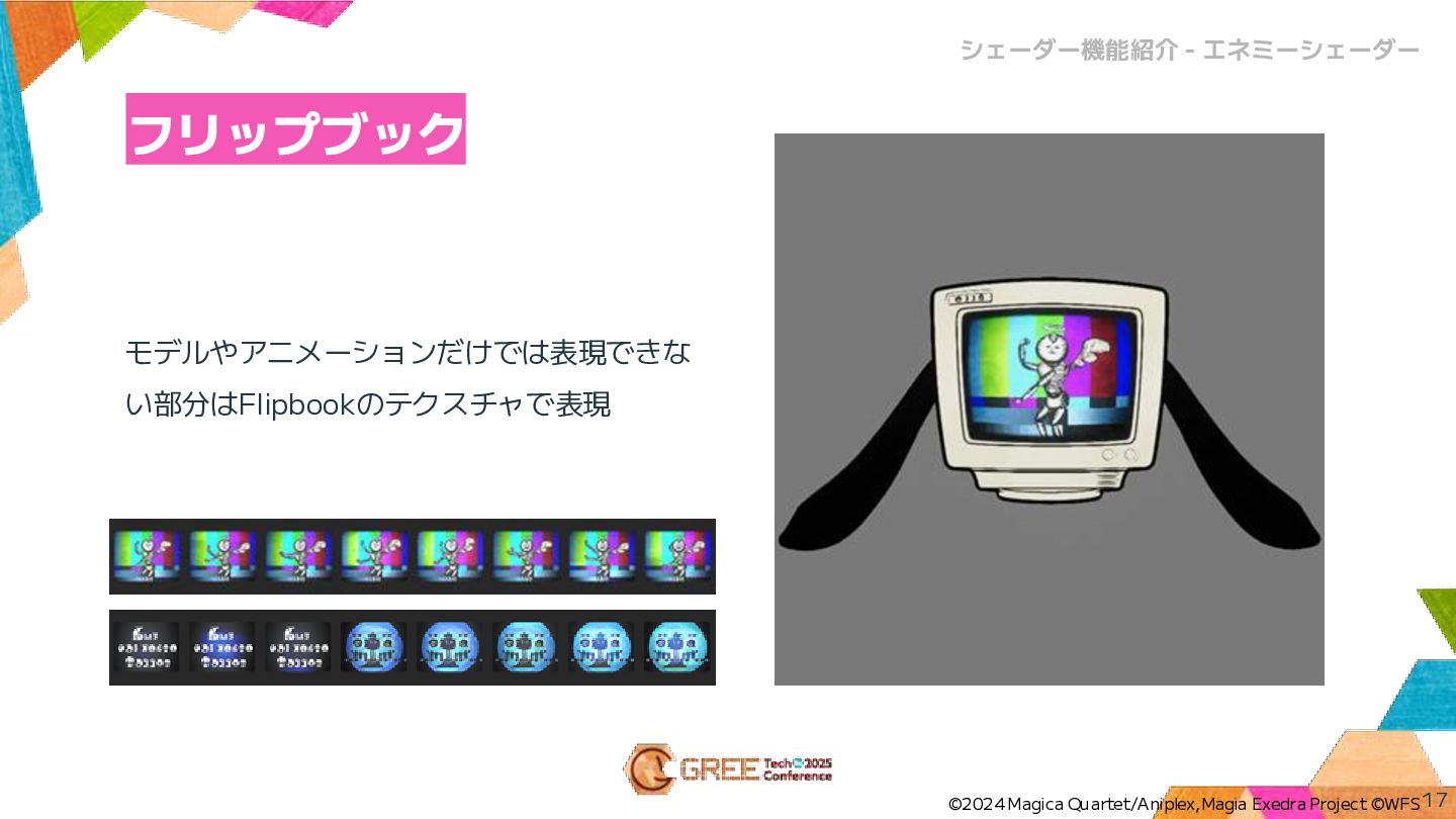 フリップブック モデルやアニメーションだけでは表現できな い部分はFlipbookのテクスチャで表現 17 シェーダー機能紹介 - エネミーシェーダー ©2024 Magica Quartet/Aniplex,Magia