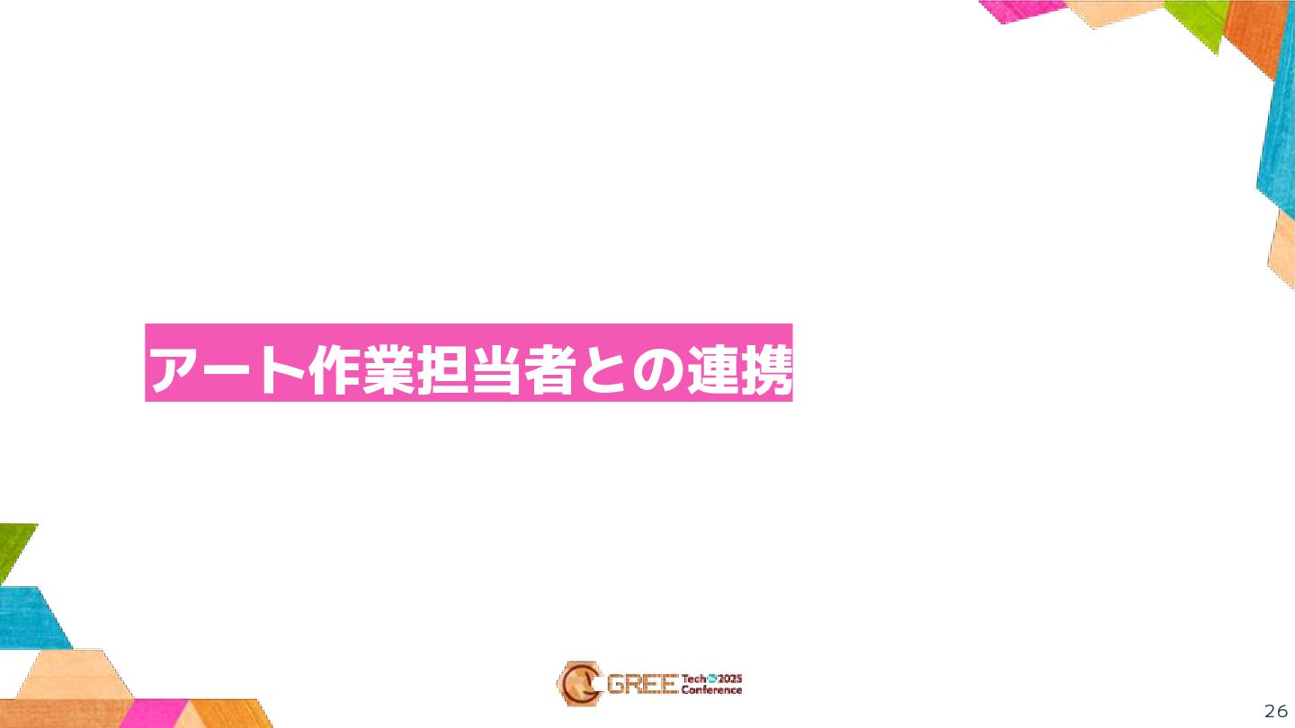 • 結果が想像しやすく、視覚的に理解しやすい • チーム内でも何度か勉強会を実施 ◦ アーティストさんの中には率先して作成し、 「これどうですか?」と提案してくださる方もいた
