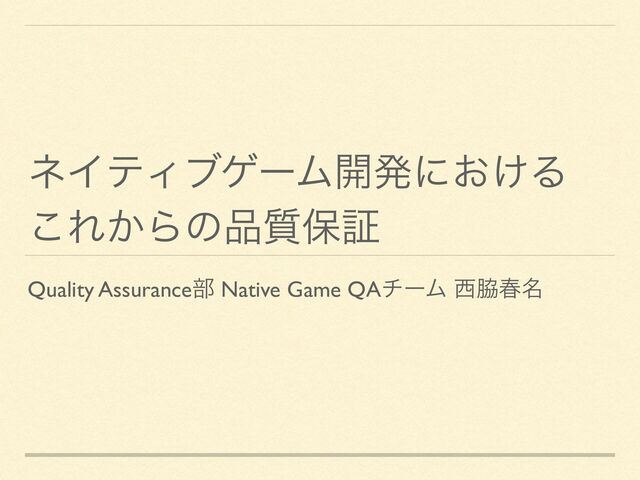 ωΠςΟϒήʔϜ։ൃʹ͓͚Δ ͜Ε͔Βͷ࣭อূ Quality Assurance෦ Native Game QAνʔϜ य़໊