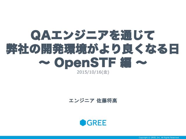 QAエンジニアを通じて弊社の開発環境がより良くなる日〜 OpenSTF 編 〜 グリー株式会社 QA&LQAチーム エンジニア 佐藤将高