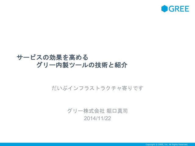 <セッション内容> サービスの効果を高めるグリー内製ツールの技術と紹介 堀口 真司 グリー株式会社 開発統括本部 インフラストラクチャ本部
