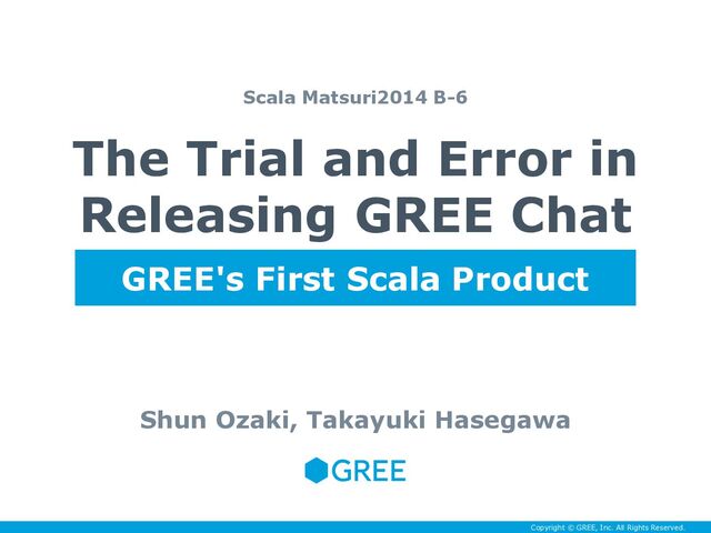 本発表では、GREEチャットのバックエンドをScalaで開発したときの利点や苦労した点についてお話させて頂きます。