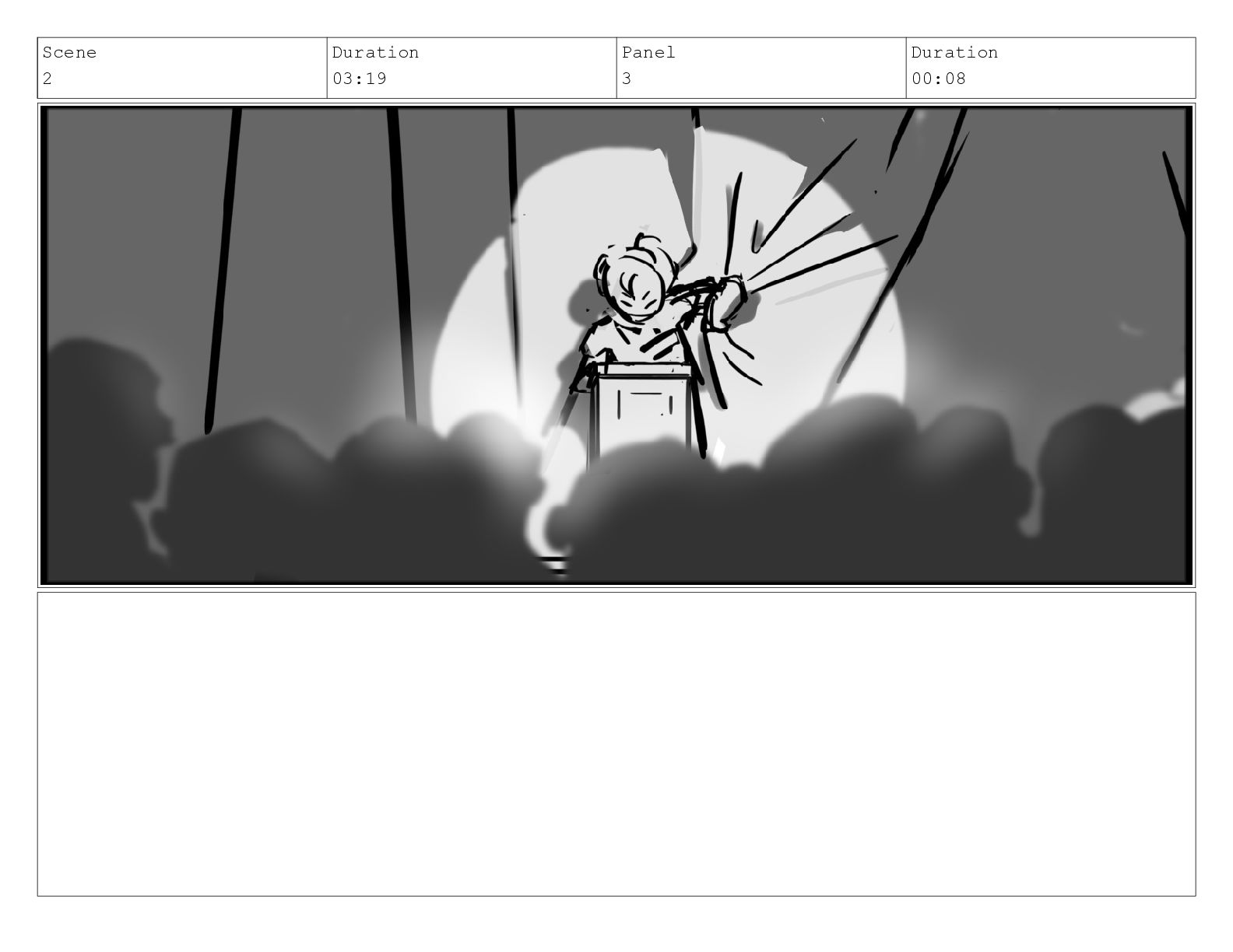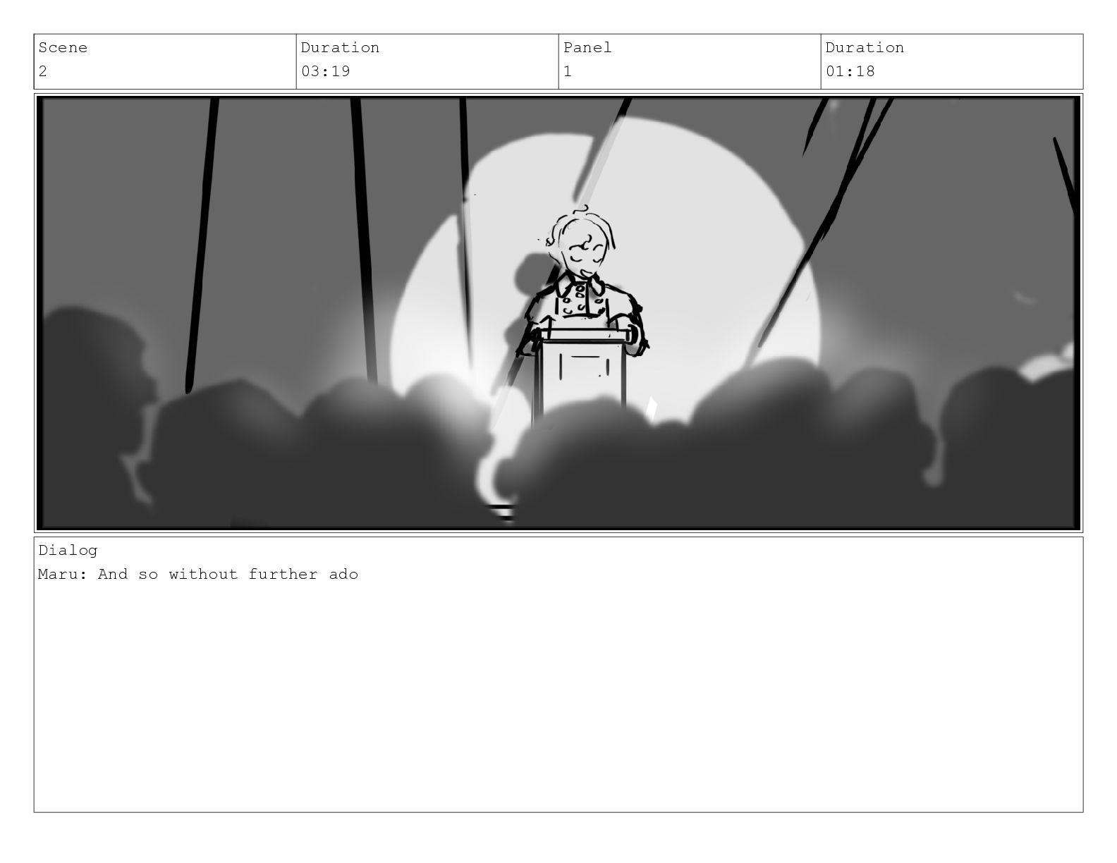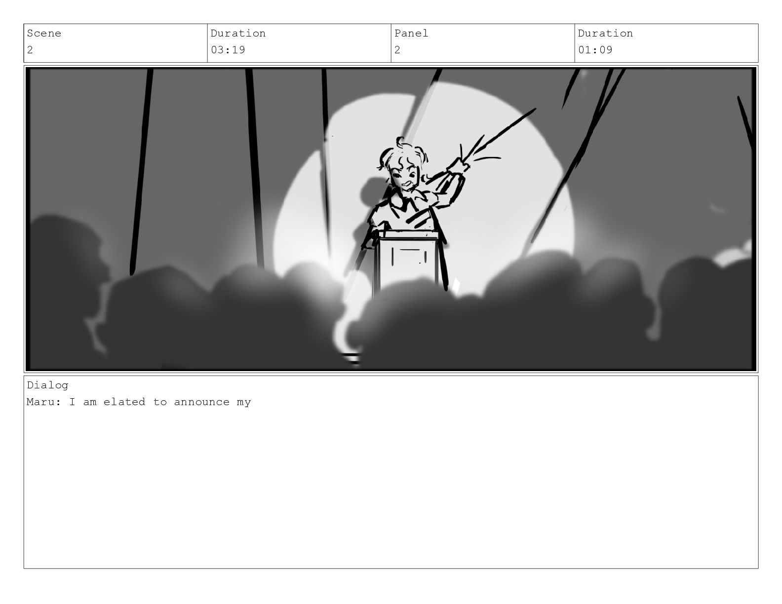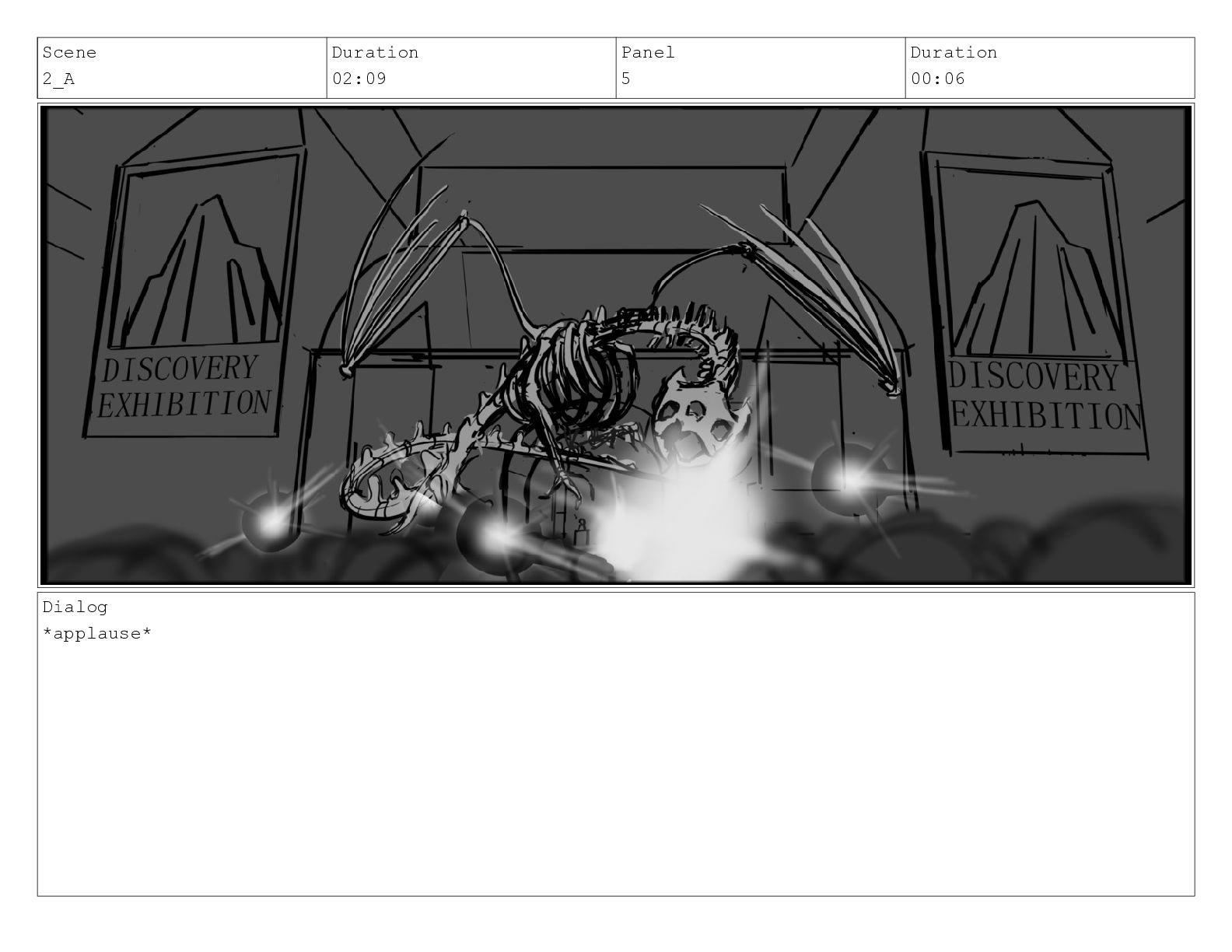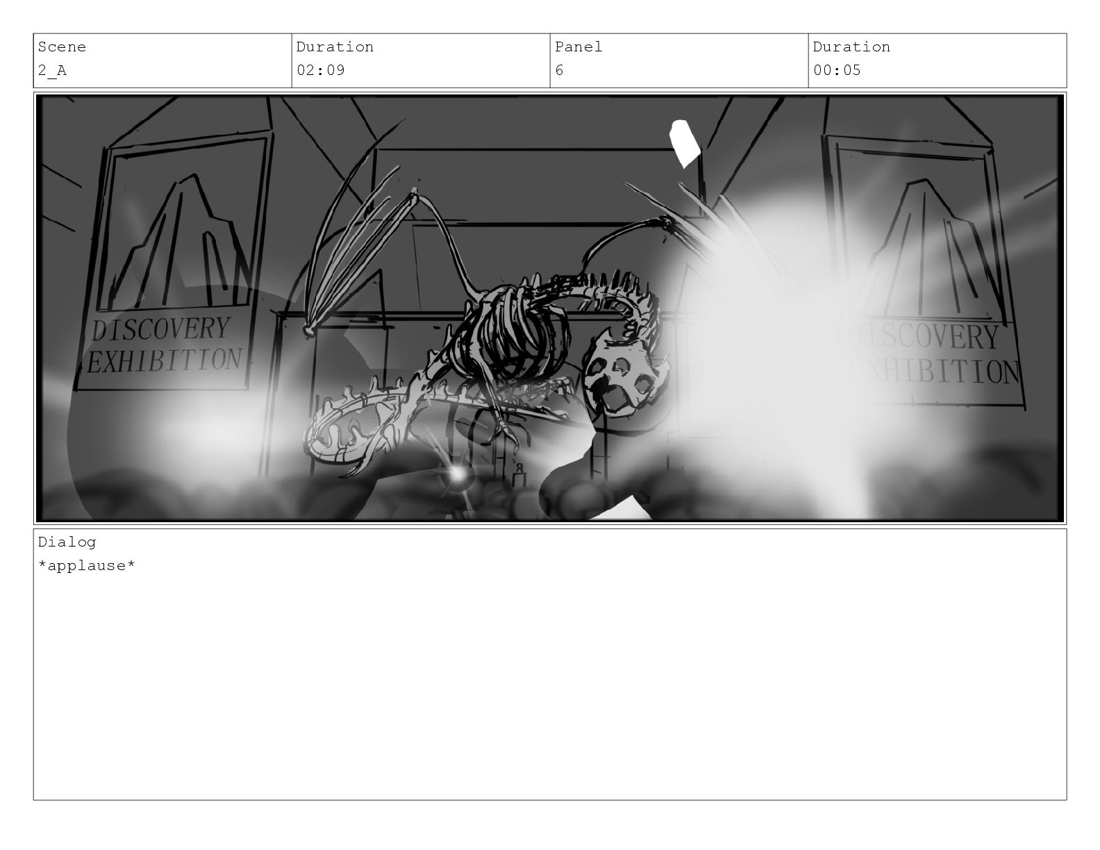 Scene 2_A Duration 02:09 Panel 6 Duration 00:05 Dialog *applause*