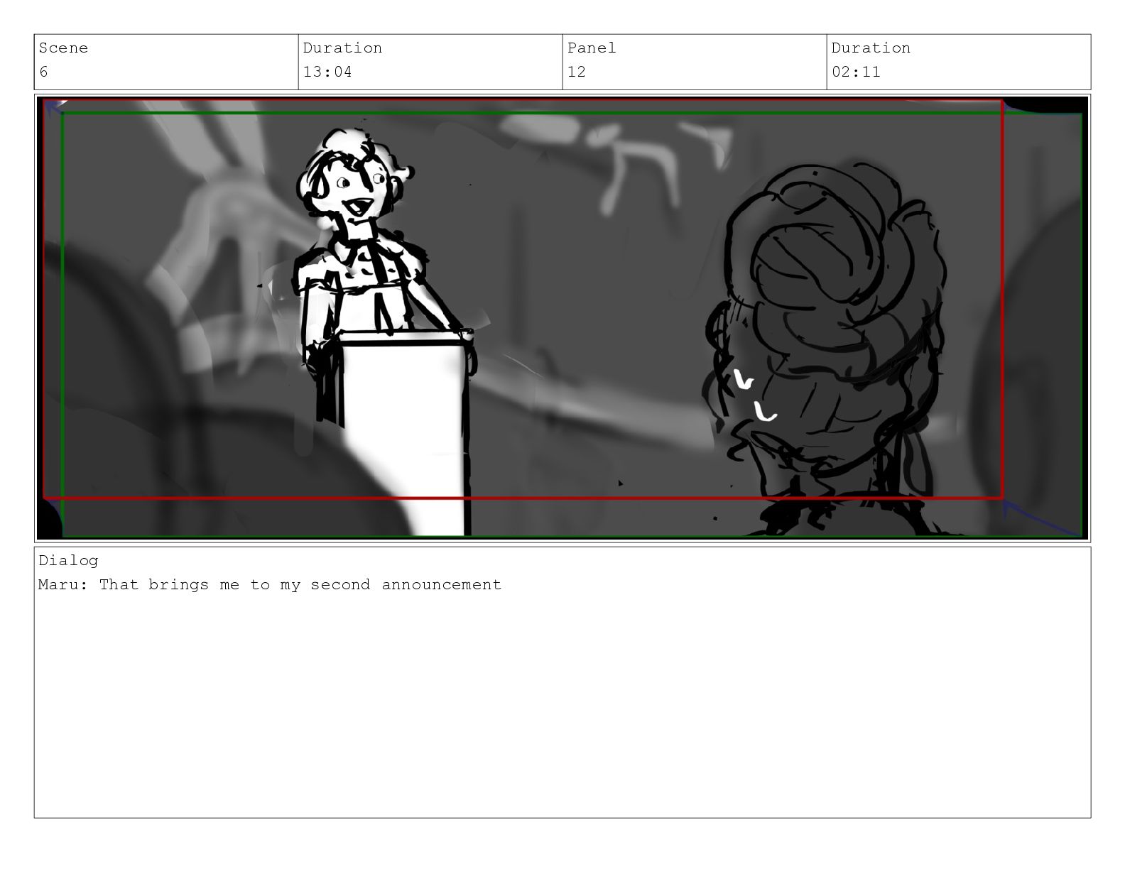 Scene 6 Duration 13:04 Panel 12 Duration 02:11 Dialog Maru: