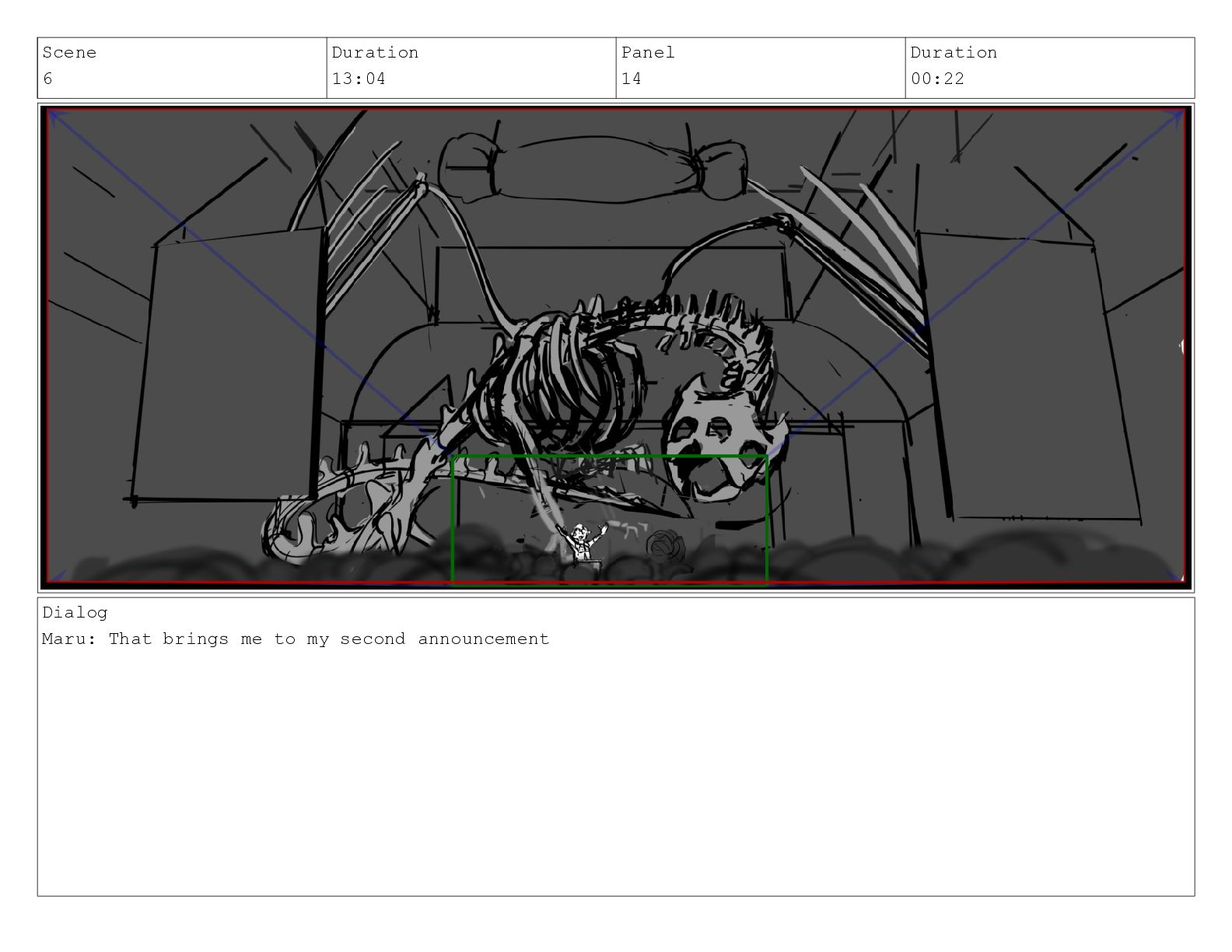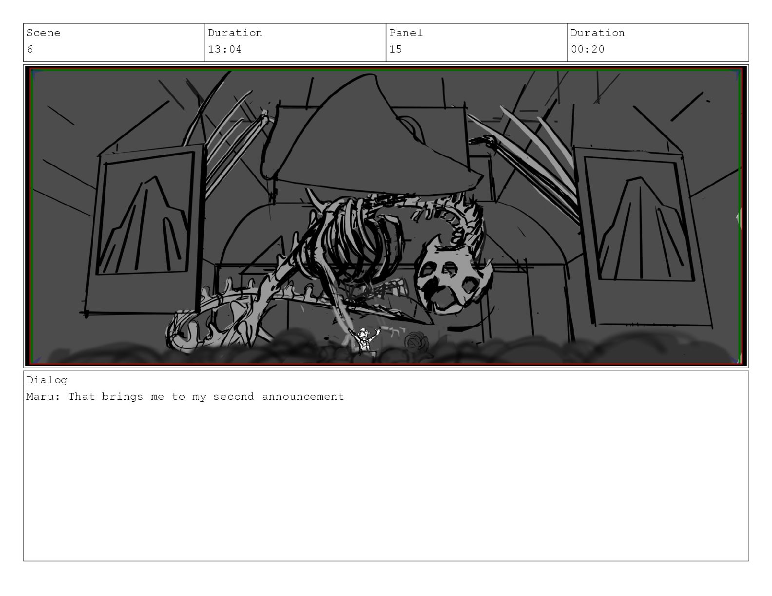 Scene 6 Duration 13:04 Panel 14 Duration 00:22 Dialog Maru: