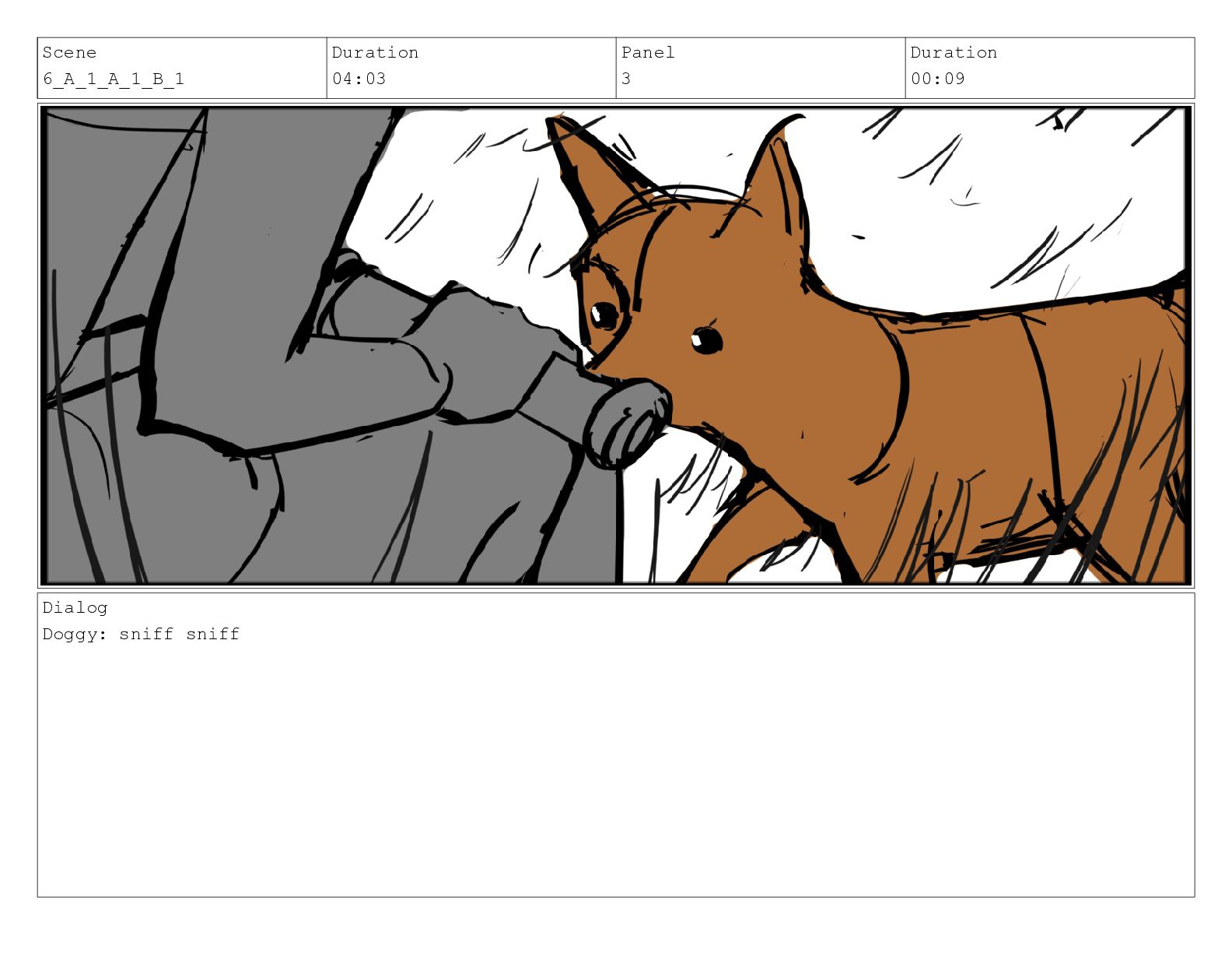 Scene 6_A_1_A_1_B_1 Duration 04:03 Panel 3 Duration 00:09 Dialog Doggy: