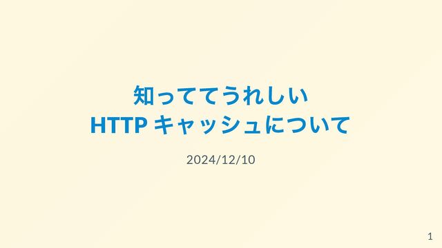 知っててうれしい HTTP キャッシュについて 2024/12/10 1